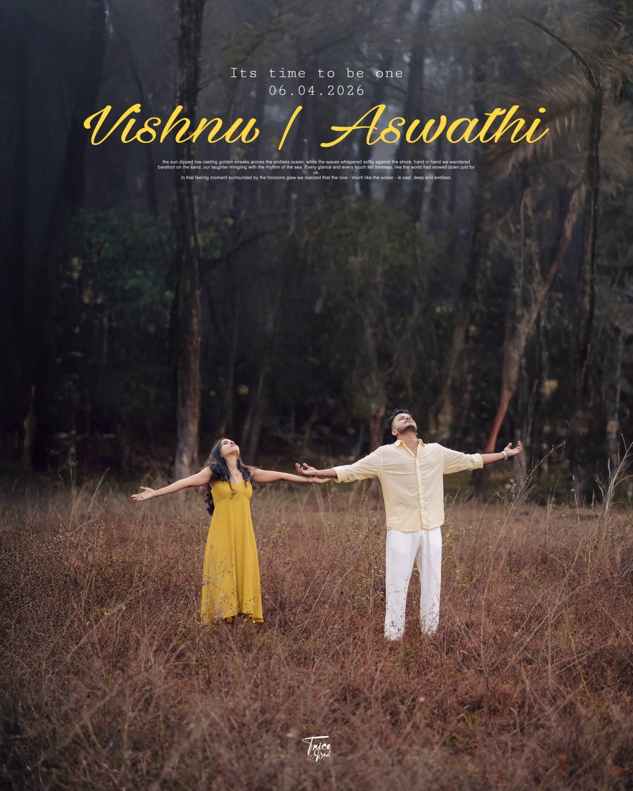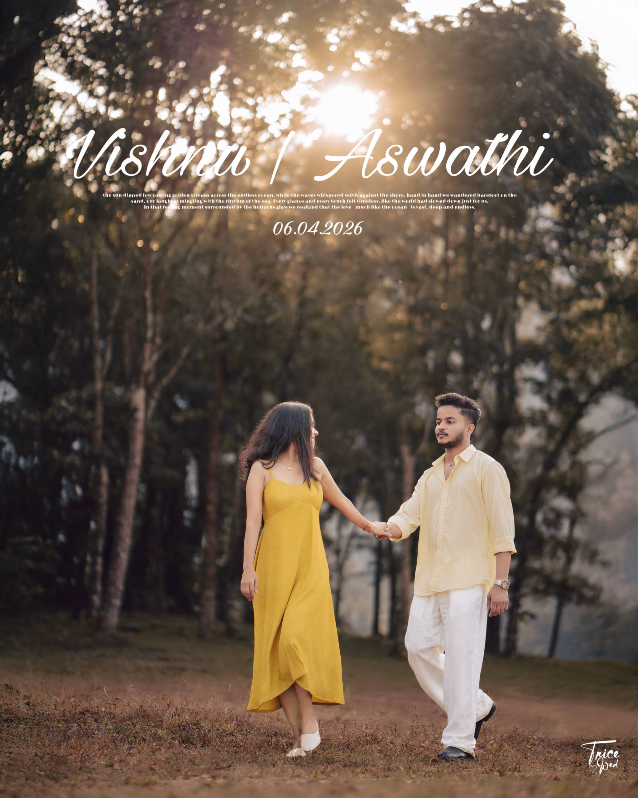 With great joy, we invite you to be part of our wedding ceremony. All are welcome. Days : Hours : Minutes : Seconds We are delighted to invite you to be part of our wedding celebration as we begin our journey together. Your love and blessings mean everything to us Muhurtham : 11:00 AM – 12:00 PM 06 April 2026 ( Monday ) Edayadi convention centre Naduvannur, Kozhikode Get Directions Open Invitation Our story in pictures